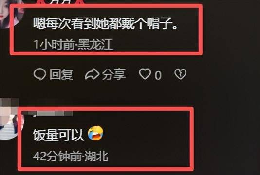 可最让人不解的,还是她头上的帽子。从视频开始到结束,不管是介绍食物,还是吃东西、说话,她都戴着一顶帽子,始终没有摘下来。