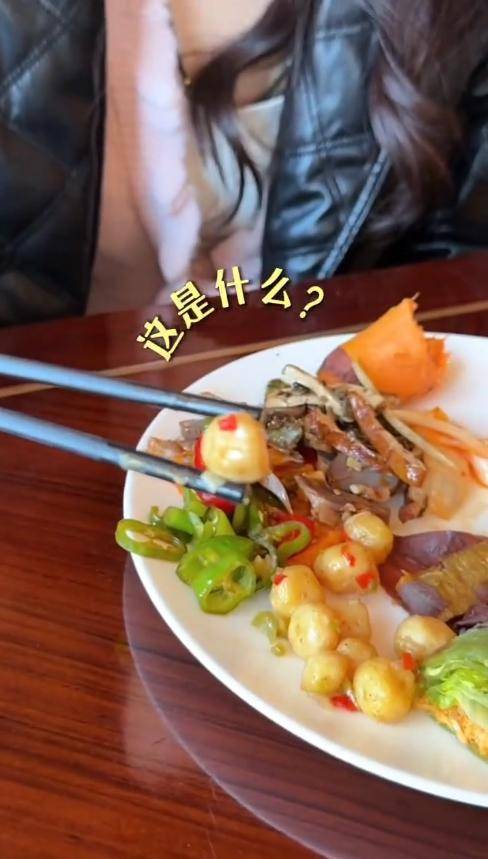 除此之外,还有一小碟看着像土豆又像鹰嘴豆的小东西,董璇说自己拿的时候纯好奇,用嘴尝了尝,才确定是很小的土豆,语气里满是可爱的疑惑。