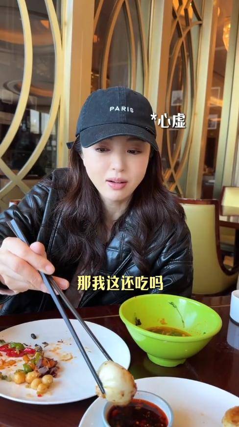 可没吃两口,她就停下了,脸上的表情从满足变成了悔恨,嘴里念叨着“又吃多了”,那模样,像极了普通人减肥时没忍住嘴的样子。