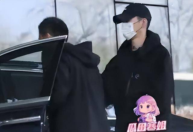 他当天穿了一身全黑穿搭,从外套到长裤黑得彻底,看着利落又低调,没有一点昔日明星的排场。