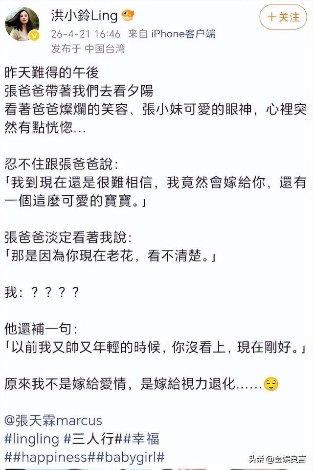 2024年底,两人登记结婚,同时官宣怀孕,47岁的洪小铃,终于迎来了自己的幸福。