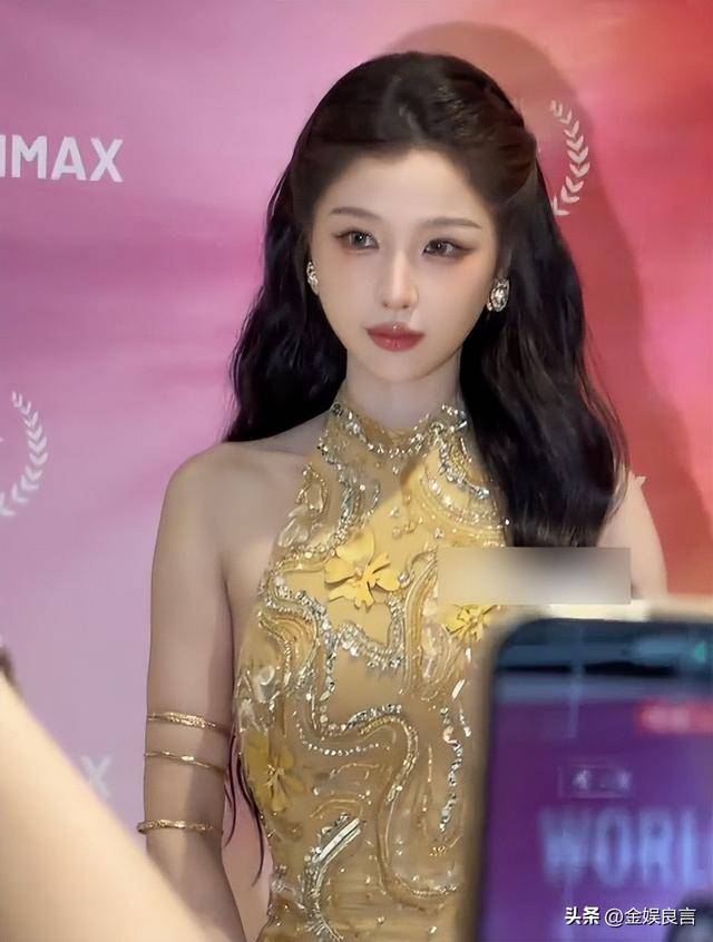 紧接着她又换了一套金色薄纱鱼尾裙,粉丝狂吹“美得慷慨又大方”,可生图里的真实状态,比蓝色礼裙还要拉胯。