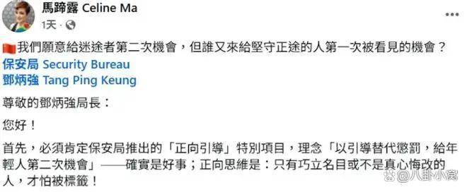 TVB艺人马蹄露的公开信引发了广泛共鸣。她质问:“谁又来给坚守正途的人第一次被看见的机会?”这句话道出了许多人的心声:如果立场有问题、伤害民族情感的艺人可以通过道歉轻易复出,那么那些一直坚守正道的艺人又该如何自处?