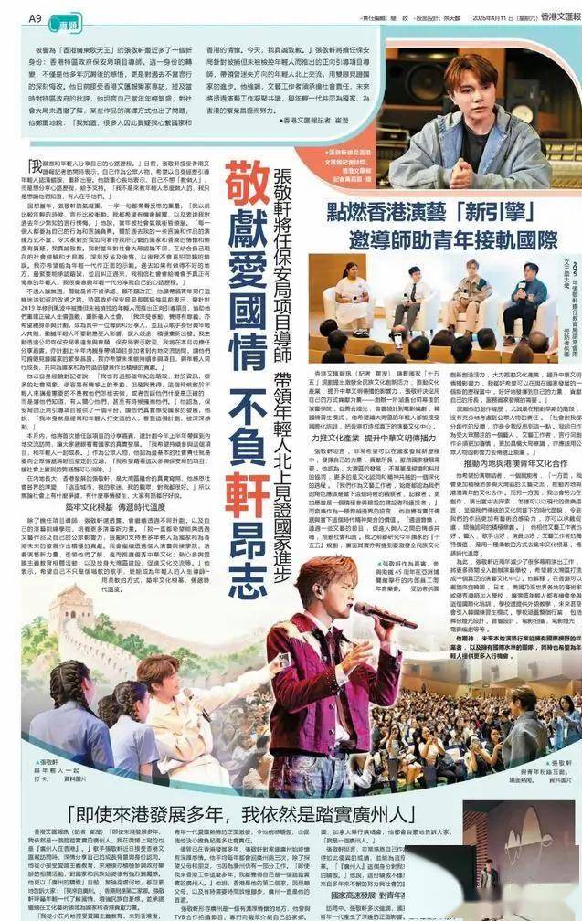 4月11日,张敬轩通过香港《文汇报》专访,系统地为早年不当言论公开道歉。他承认自己“年轻时阅历不足、被外界气氛冲昏头脑”,并对过去的言行表示“真诚致歉”。与此同时,他宣布自己已成为香港保安局“正向引导项目”的导师,计划带领香港年轻人到内地交流,“见证国家的繁荣昌盛”。