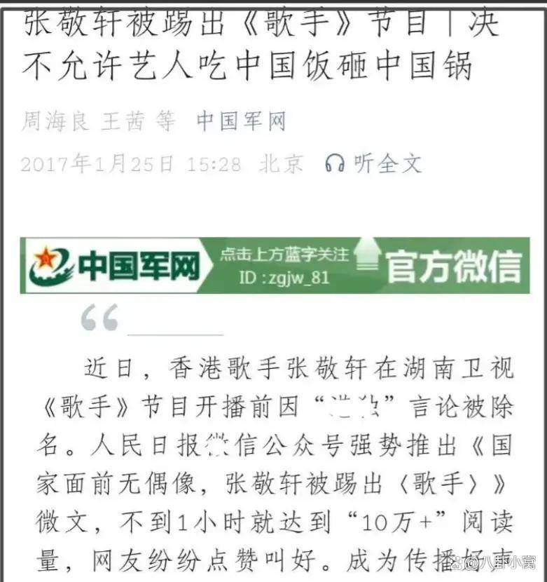 网友的强烈反应,源于张敬轩长达九年的争议记录。2017年,他因不当言论被湖南卫视《歌手》节目除名,所有相关镜头被删除。当时,《人民日报》等官方媒体发文批评,明确表示“决不允许艺人吃中国饭砸中国锅”。