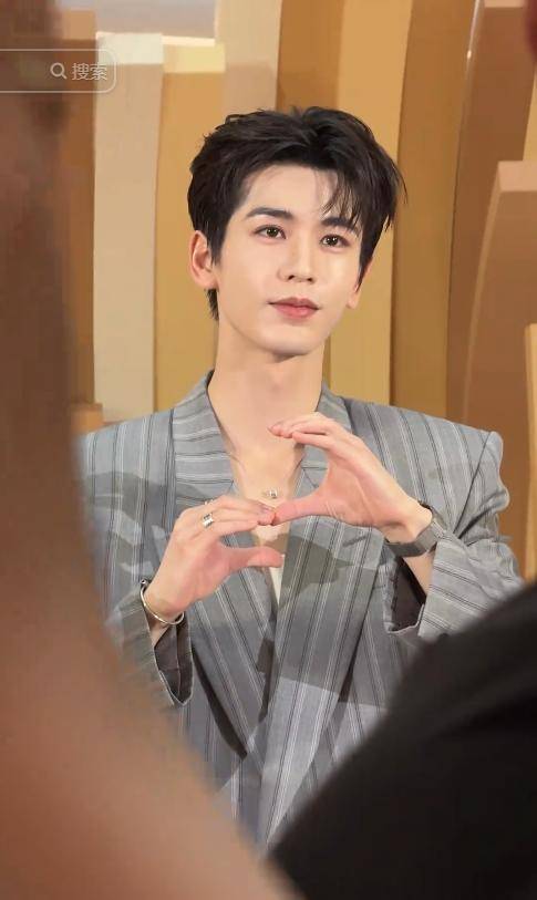 当天他的头发没有做复杂的造型,就是简单的顺毛,额前的碎发微微垂落,衬得他的眉眼更加柔和。