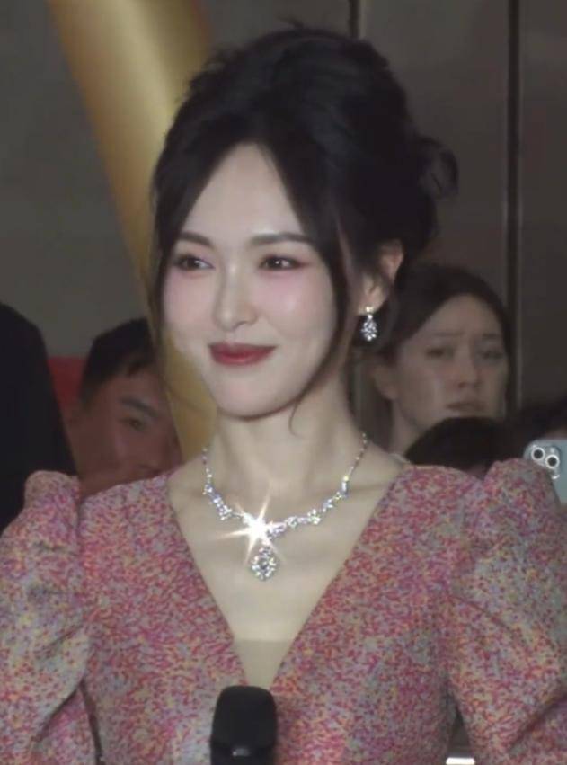 红毯上的她,常常身着浅色礼裙,要么是温柔的淡粉长裙,缀着细碎珍珠,要么是简约的白色礼服,搭配精致妆容,笑容明媚。