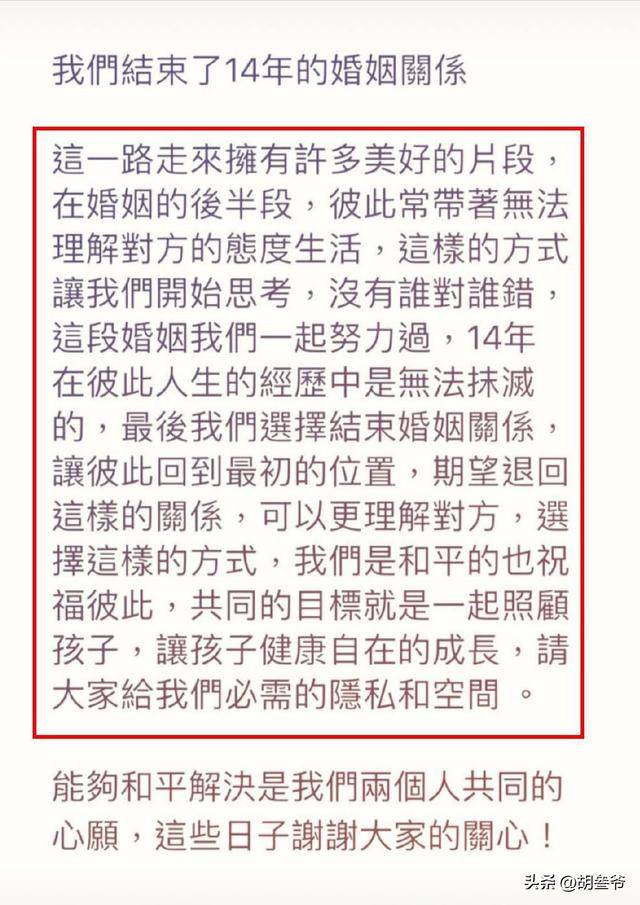 声明里写得很委婉,说婚姻后半段无法理解对方,会共同抚养儿子Joe和女儿Grace。