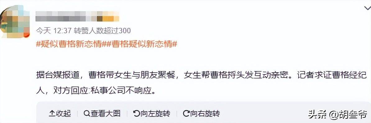 但万万让人没想到的是,一直自称怀念前妻的曹格,居然早已经开始了新恋情,莫非之前都是在立人设?
