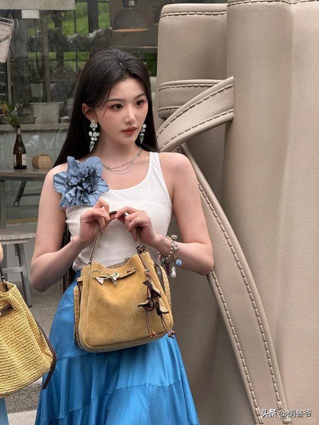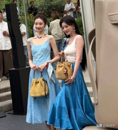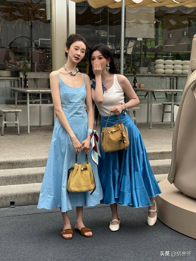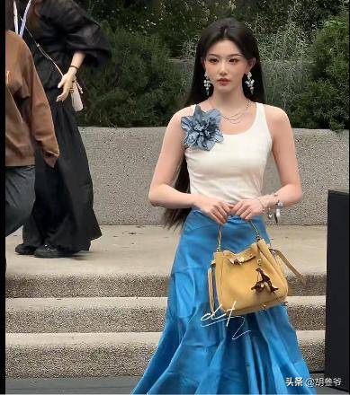 张艺凡当天穿了一件蓝色吊带裙,手腕搭了条丝巾,看上去走温柔松弛风,可脚上搭配的平底拖鞋,直接拉低了整体质感。