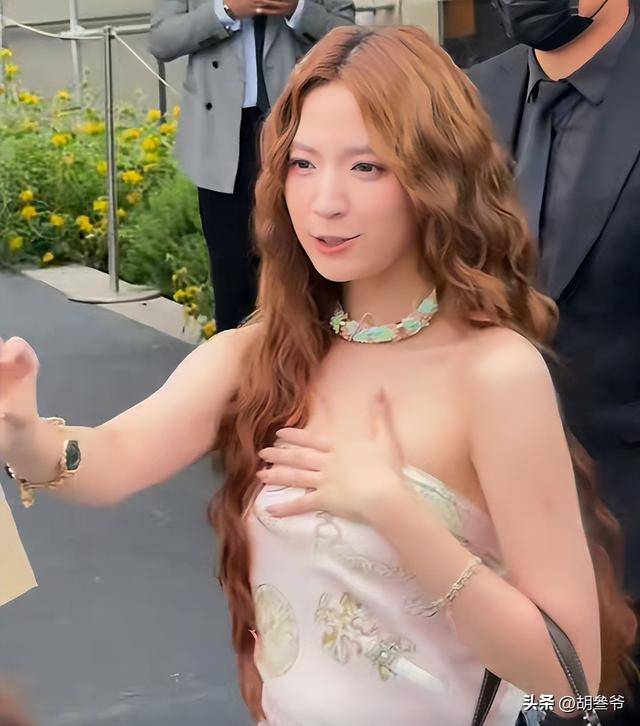 对比她之前欧米茄活动的银白色亮片鱼尾裙,那次被夸人形高光板,曲线优越,这次真的差距太大。