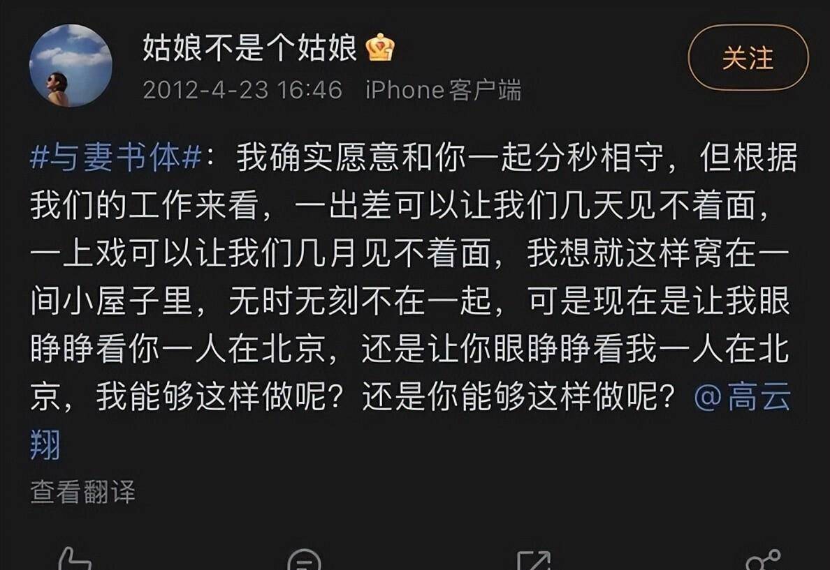 高云翔和董璇结婚刚半年,张婉婷那时二十一岁,在微博上写长信向他表白,同年五月,有人拍到他们一起进酒店,高云翔戴着墨镜躲开镜头,对外说是去见导演。