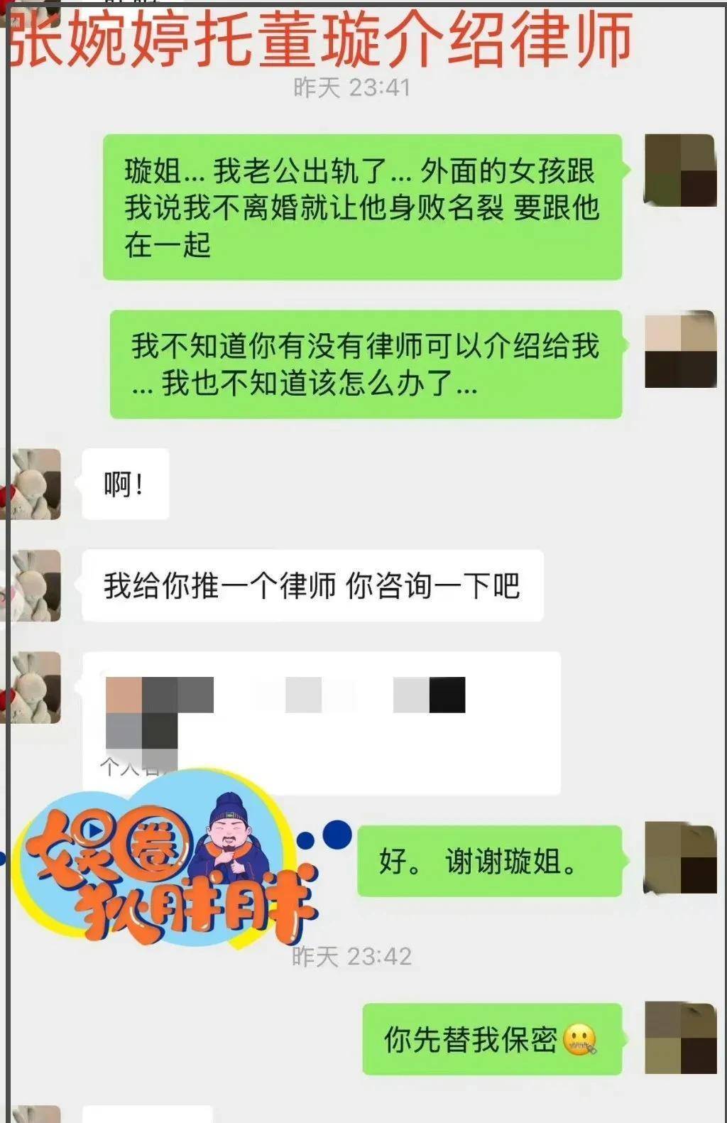 张婉婷在宋宁峰事情刚出来的时候,就私下找董璇帮忙介绍离婚律师。