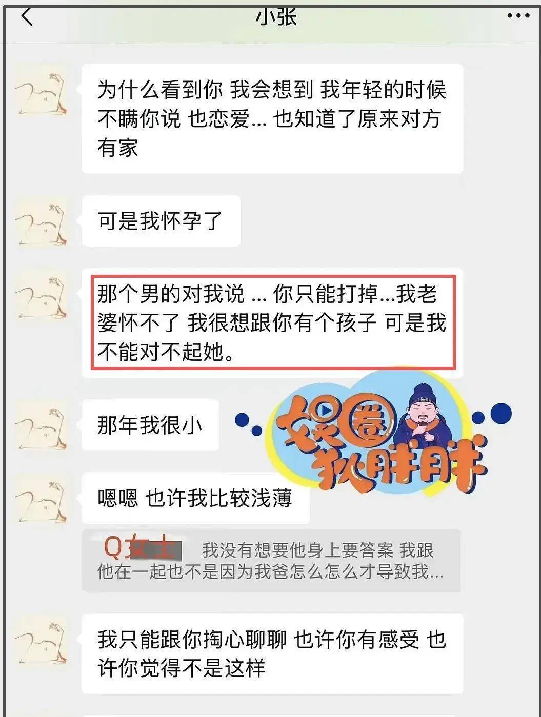 在曝光的聊天记录里,张婉婷提到自己二十岁时爱上一位已婚男性,怀孕后被迫流产,对方给出的理由是“我妻子无法生育”,这些细节曝光后,网友立刻联想到高云翔事件,因为时间和经过实在太相似。