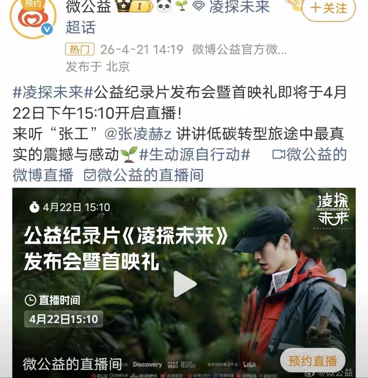 世界地球日当天,张凌赫推出个人首部公益纪录片《凌探未来》,瞬间引爆全网。