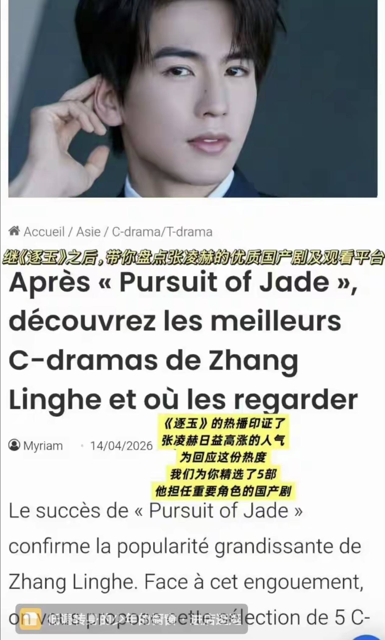 专题全面梳理其演艺生涯,推荐《逐玉》《宁安如梦》等代表作,肯定其表演实力与角色塑造力。 凭借《逐玉》在Netflix全球热播,他在海外社交平台单月涨粉百万,TikTok内容获七位数点赞,成为法国年轻人认知中国演员的标志性窗口。