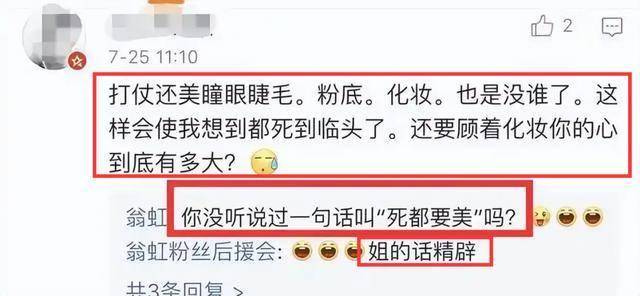 可翁虹不服立马回怼该网友,“你没听说过一句话叫‘死都要美’吗?”她粉丝团也附和道,“姐的话精辟”。