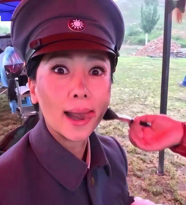 只见翁虹在补妆时,脸上的假睫毛、眼线、粉底液一个不落,嘴唇也是水润嘟嘟的,没有一点点战争贫苦的痕迹。