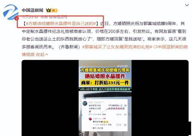 眼看舆论要翻车,方媛赶紧出来解释:那个结婚照水晶摆件是自己送的。
