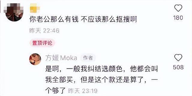 方媛还替郭富城开脱,直言一般她纠结颜色时,郭富城都会让她全买了,是她自己不想浪费,所以才只选了一个。