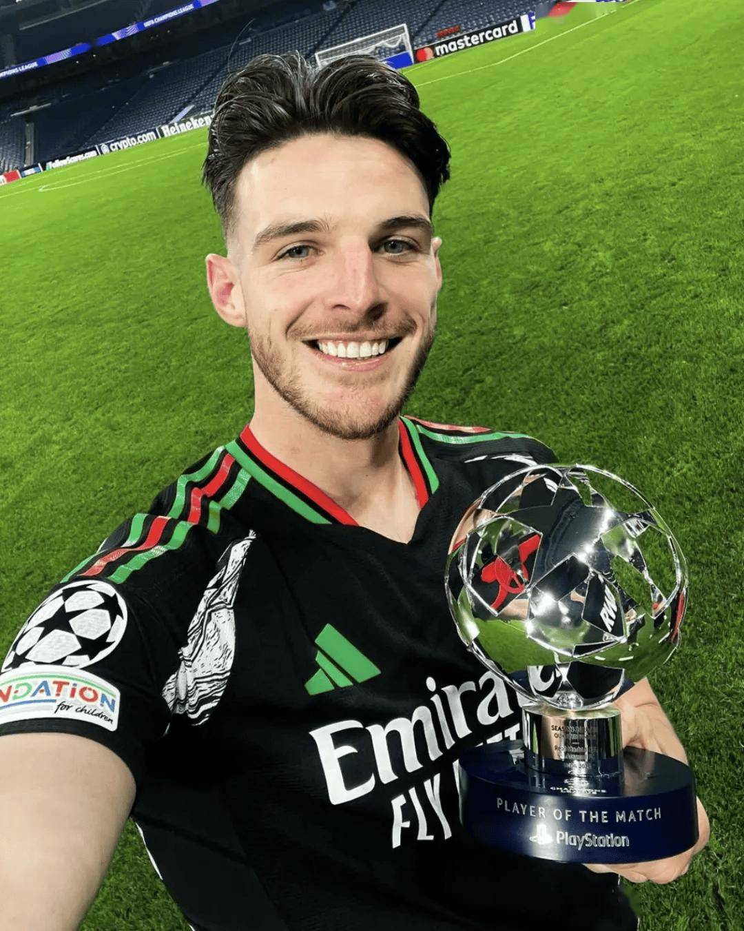 27岁的德克兰Declan Rice是当今世界顶级足球球员之一,效力于英格兰阿森纳,被人称“现役最强后腰”,身价高达1.2亿欧元。不仅年轻多金能力强,德克兰的商业价值也不可