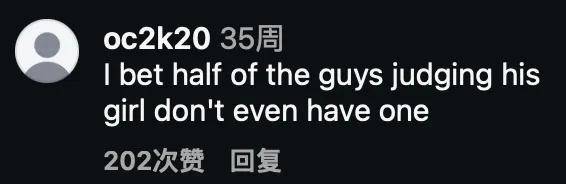 “我敢打赌,那些对他的女友指指点点的男人们,有一半自己连个对象都没有。”