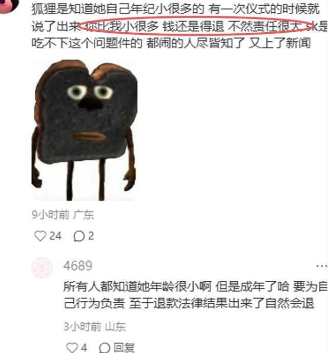 狐狐大睡也曾经在直播里提过要退钱的事,她似乎也知道对方年纪小,这钱有可能保不住,但还是心存侥幸。