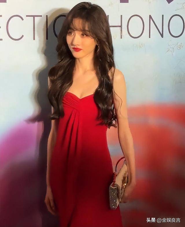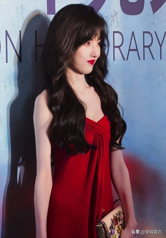 她穿了一身Valentino红裙,本是想走港风大美人路线,搭配了蓬松的大波浪卷发,可过于纤瘦的身材,直接拉垮了整套造型。