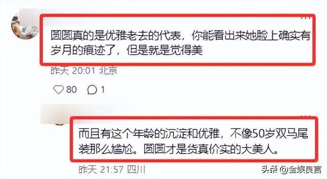 网上有两条评论,特别能说出大家的心声,一条说“高圆圆这状态才是中年女星该有的样子,不扮嫩、不节食,优雅又大气”,另一条说“宋祖儿别再瘦了,稍微胖一点,找回以前的灵动不好吗”。