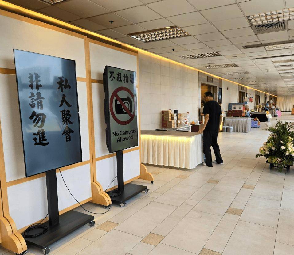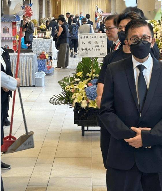 三人都佩戴口罩,但进入灵堂区域时,Agnes被阻拦,只能站在门口等候,全程一言不发,并有工作人员看守,在灵堂外如同被罚站!即便现场有椅子,她也婉拒坐下!