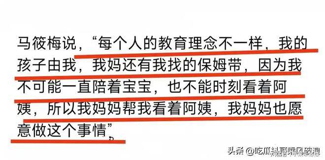 谈及保姆的作用,马筱梅明确表示家中当然需要帮手,但孩子的教育绝不会完全交给保姆。她只会让保姆承担粗活,而孩子的教育责任,将由她自己和母亲全权负责。马筱梅的话里话外,流露出对小杨阿姨的不满,她认为小杨阿姨学历低、认知有限。如果她希望汪宝在北京一步一个脚印地接受良好教育,那么学前启蒙阶段,她必定会与母亲倾尽全力。显而易见,不论汪小菲和张兰对汪宝抱有多大期望,马筱梅对汪宝的未来寄予厚望,她的心思全然是望子成龙,真切而深沉。