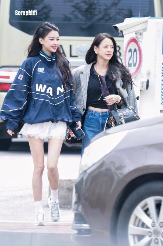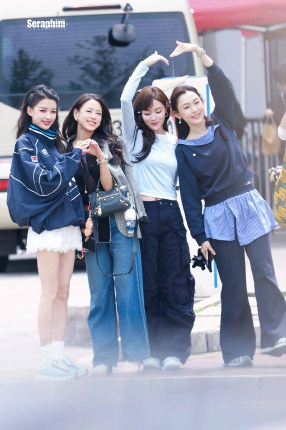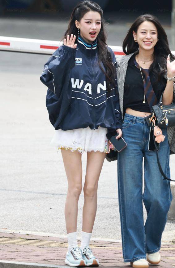 她上身搭配了一件简约的上衣,版型宽松,既修饰了身材,又透着几分休闲自在,和舞台上那个气场全开的她,判若两人。