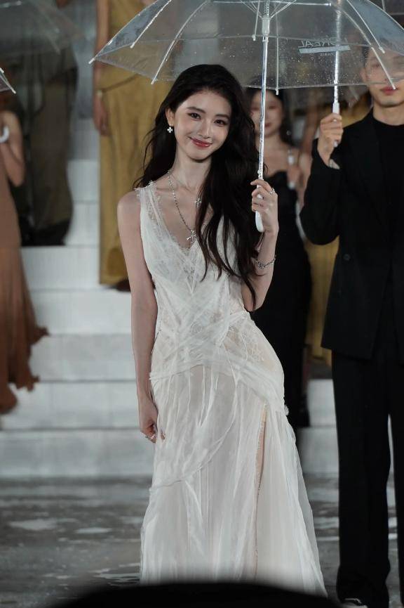 明明穿的是优雅的白色礼裙,却被她走出了刻意做作的感觉。