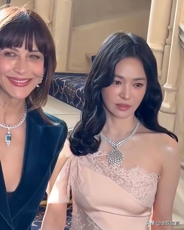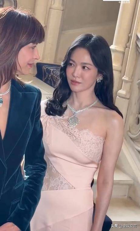 咱们都习惯了宋慧乔干练的短发造型,刷到巴黎珠宝展现场图时,差点没认出来。45岁的她留起了深棕色大波浪卷发,一袭米白色薄纱礼服站在60岁苏菲玛索身边,不仅没被压下去,反倒让大