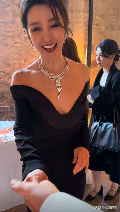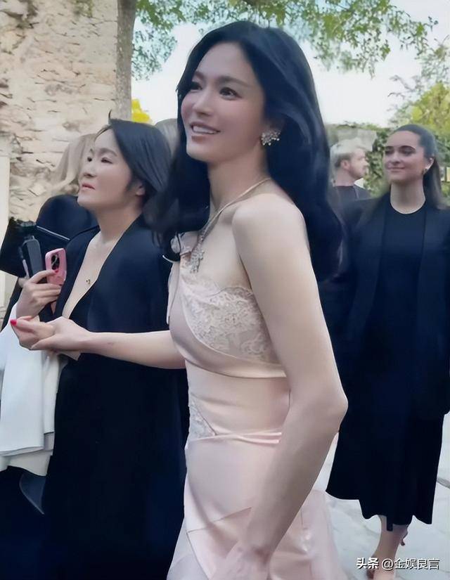 走路时步伐从容,抬手整理裙摆时,指尖的钻戒折射出细碎光泽,唇色是淡淡的裸粉色,笑容温和,没有刻意扮嫩,也没有过度修饰,每一个动作都透着沉淀多年的优雅。