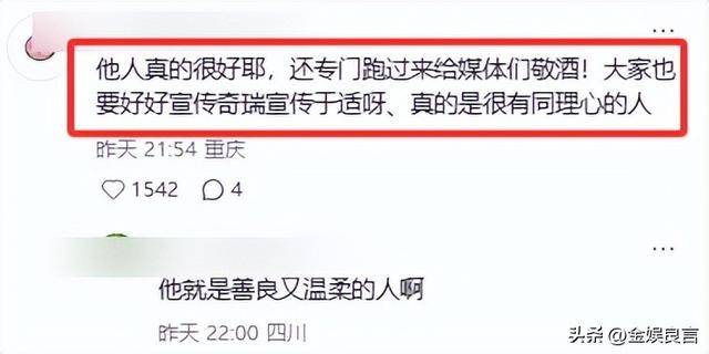 内娱不少艺人走红后就端起明星架子,说话做事都带着距离感,生怕别人不够尊重自己,可于适却偏偏反着来。4月22日晚,在奇瑞汽车的宴席上,他主动跑到媒体桌敬酒,画面一曝光就让观众感