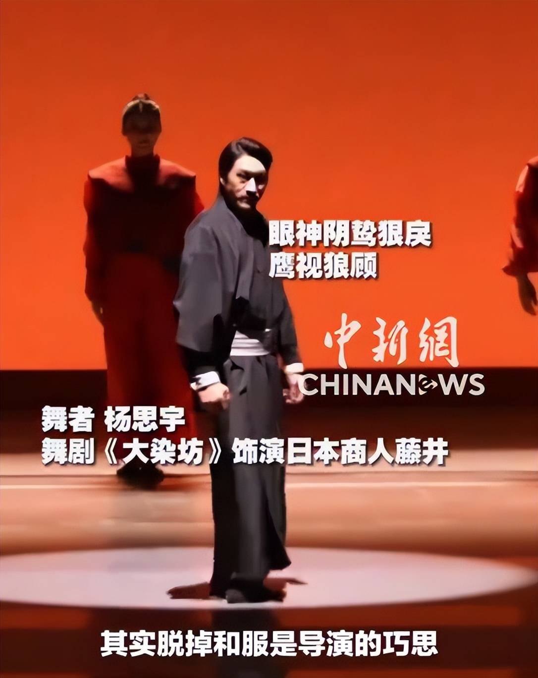 “褪去的是侵略者符号,展现的是中国舞者的分寸感。”有观众如此评价。这场脱衣谢幕,并非简单的情节设定,而是一种象征性的身份切割:戏里的藤井已随剧情走向终结,戏外的杨思宇需要以真实身份与观众重逢。和服对于他而言,是角色的皮囊,而非自己的灵魂。