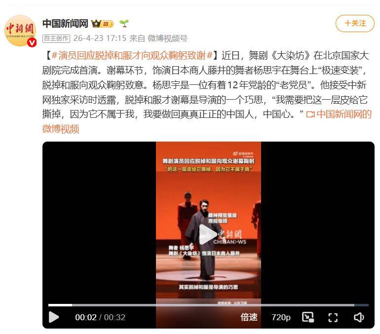 这番话击中了许多观众的心。有网友评论道:“台上是角色,台下是立场,这一细节太戳人。”在社交媒体上,这段谢幕视频被反复转发,多数声音赞誉其“专业与风骨并存”——演员在台上全心演绎反派,在台下却用细节守住了民族立场。