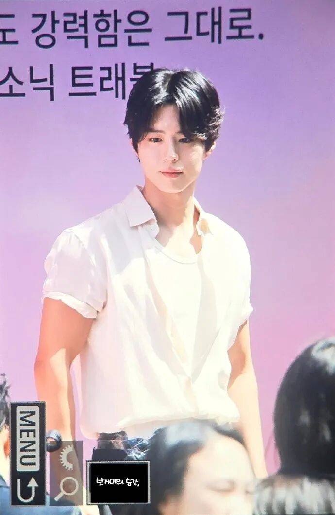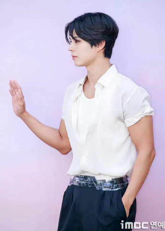 朴宝剑穿着白色衬衫,搭配黑色裤子,挥手问大家好,他帅气逼人,迷倒无数的女粉丝!