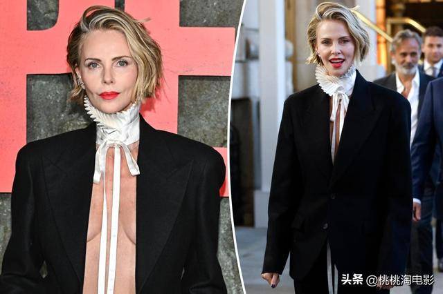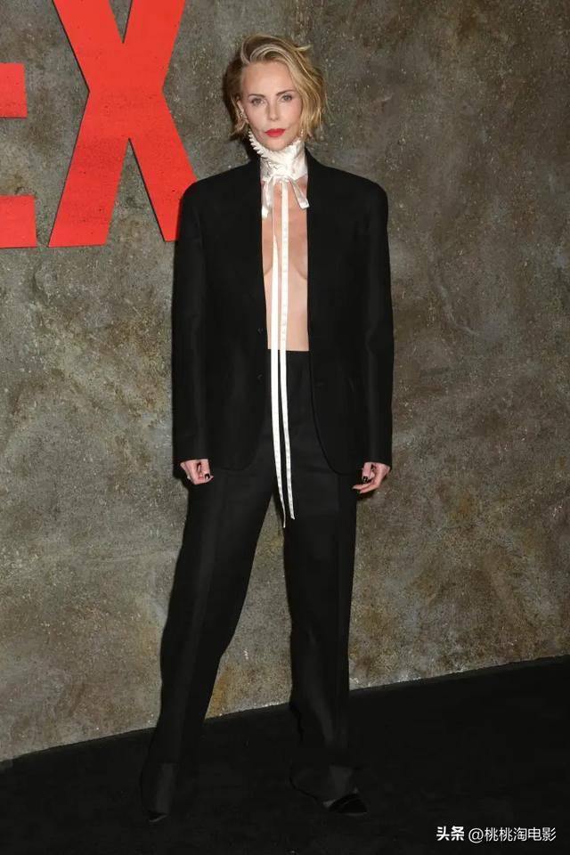 查理兹·塞隆在纽约出席网飞新片《巅峰猎杀》首映礼,以一身大胆前卫的黑色西装造型惊艳全场。她巧妙舍弃传统内搭,仅以复古褶皱领饰点缀,生动展现了中性风与性感的融合,