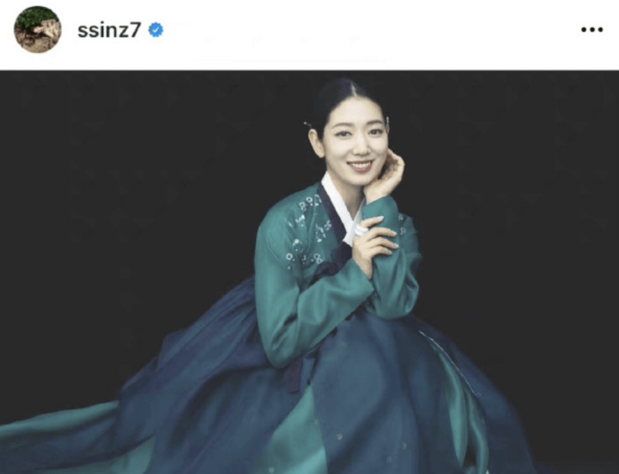 可就在这场骂战愈演愈烈的风口浪尖,朴信惠却突然晒出了一组身穿青绿色传统服饰的婚礼照片。