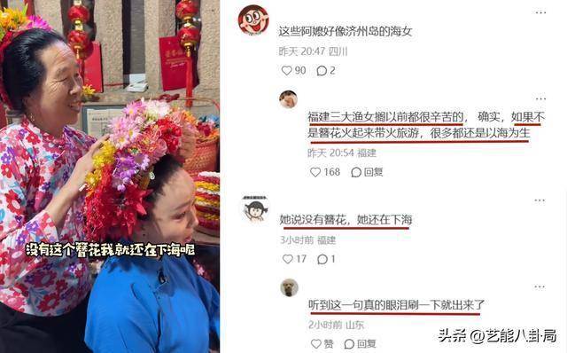 前往蟳埔村体验簪花民俗时,王一楠好奇询问盘发习俗的由来,“你们为什么要把头发盘起来呢?”阿姨淡淡地说:“以前(的发型)是一个辫子,去海里(劳动)辫子不方便。”谈及如今爆火的簪花文化,阿姨朴实地说:“没有这个簪花,我就还在下海(劳动)呢。”