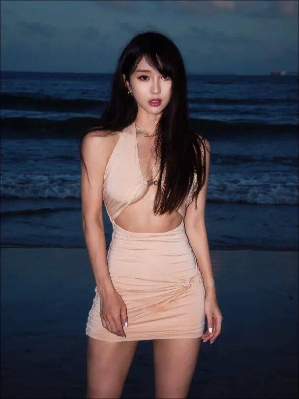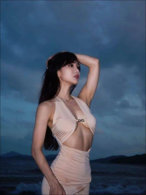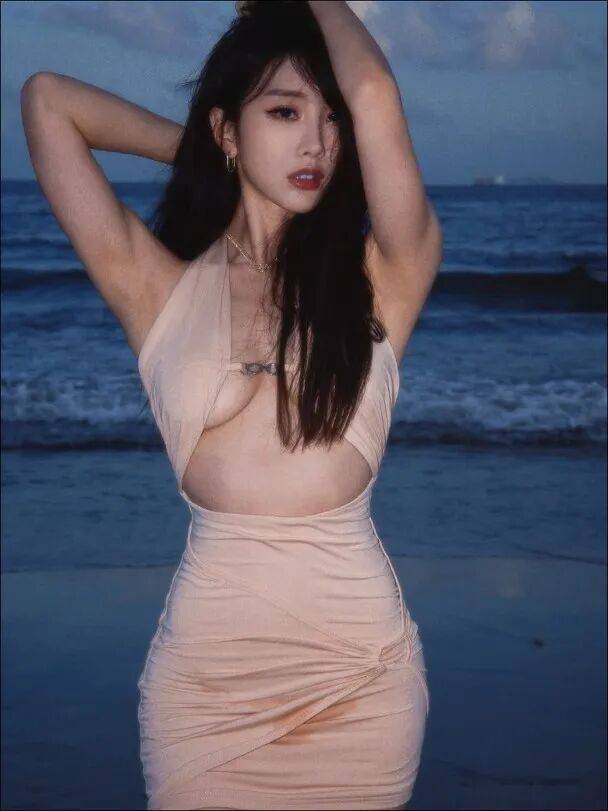 陈静(Dada)近年虽然减少幕前演出,但生活却愈来愈富贵,不时周游列国四出旅游,更经常大派福利。昨日她在社交平台上传了一组在海边拍摄的深夜大片,再度挑战性感底线。照片中,身处海边Dada穿上一件裸色挂颈式贴身连身短裙,最令人喷血的是胸前大面积挖空设计,仅靠一个金属装饰连接,大玩“门户大开”的极强视觉张力,将其傲人上围向横向外挤压,南北半球尽现,裙子贴身的剪裁更将其黄蜂腰及翘臀线条完美勾勒,S形曲线尽显无遗,加上她拨弄长发的动作,配上迷离眼神及精致妆容,显得相当妩媚,性感程度直达“核弹级”!