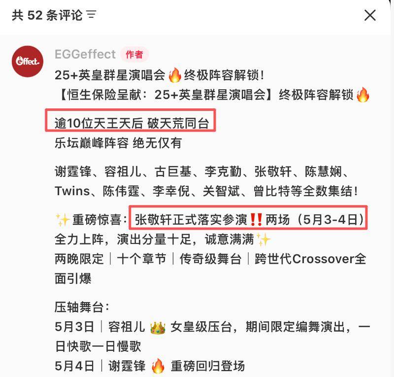 张敬轩也被描述为已协调档期,确定参与两场,并将投入彩排准备。