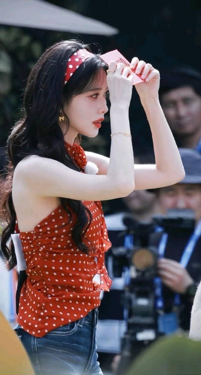 到了晚上红毯,她身着一袭Valentino大红长裙搭配大波浪卷发,红唇烈焰,出发图里明媚而耀眼,想来是要复刻90年代港风女神的明艳风情,但没想到,却被网友调侃成“小孩偷穿大人衣服”现场。
