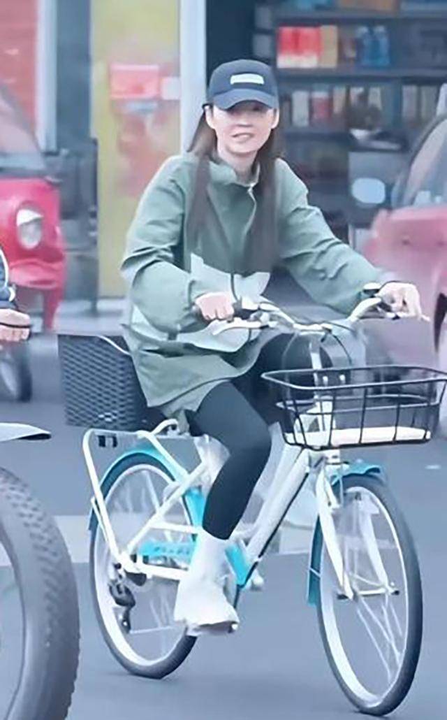 而47岁的林姵希则戴着鸭舌帽,穿着军绿色上衣和紧身裤,小腿纤细得像少女,骑在自行车上笑得眼睛弯弯的,阳光洒在她脸上,整个人都在发光。