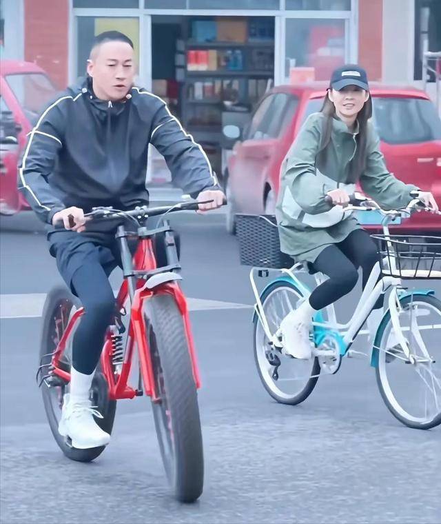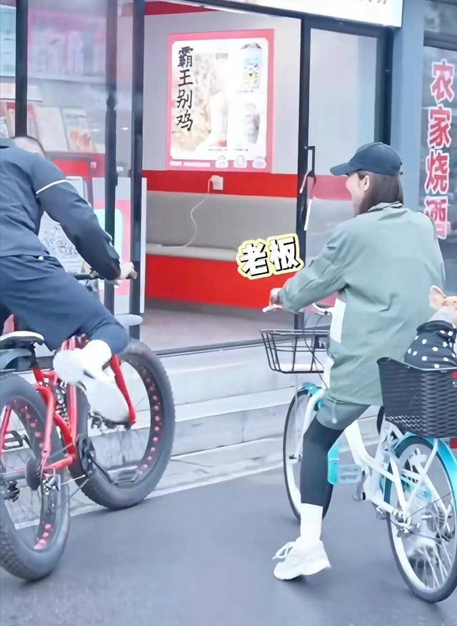 两人骑着车在东阳影视城街头穿梭,到了早餐店就停下来,像普通夫妻一样边吃边聊,偶尔还互相递个纸巾、夹个包子,甜得能挤出蜜来。