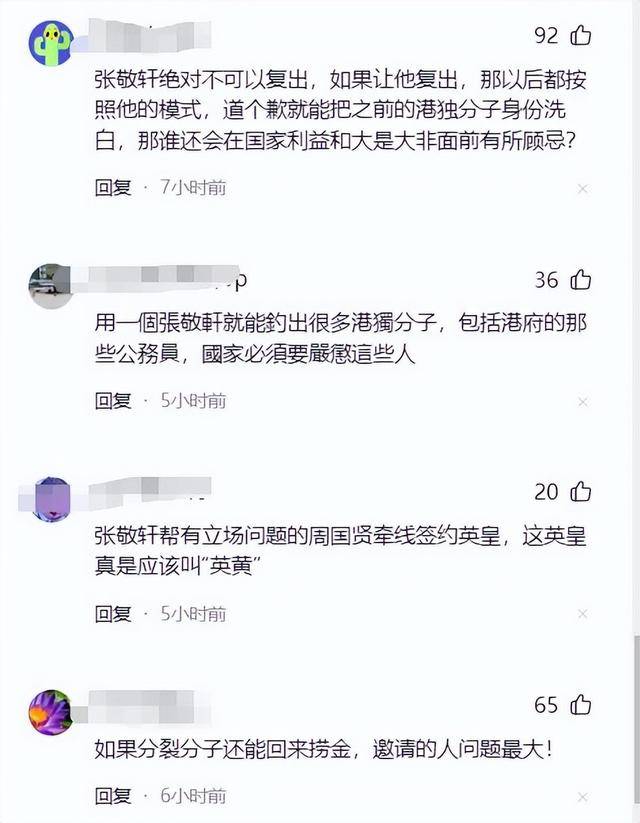 而像张敬轩这样立场有问题、言行低俗的劣迹艺人,就应该被抵制,不能给他们复出捞金的机会。
