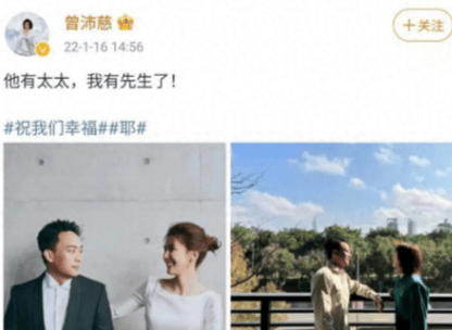 时间拉回到 2022 年 1 月,曾沛慈突然在微博晒出和孙立衡的甜蜜对视照,配文一句 **“他有太太,我有先生了”**,正式官宣婚讯,打了无数粉丝一个措手不及,惊喜之余,大家也纷纷送上了祝福。