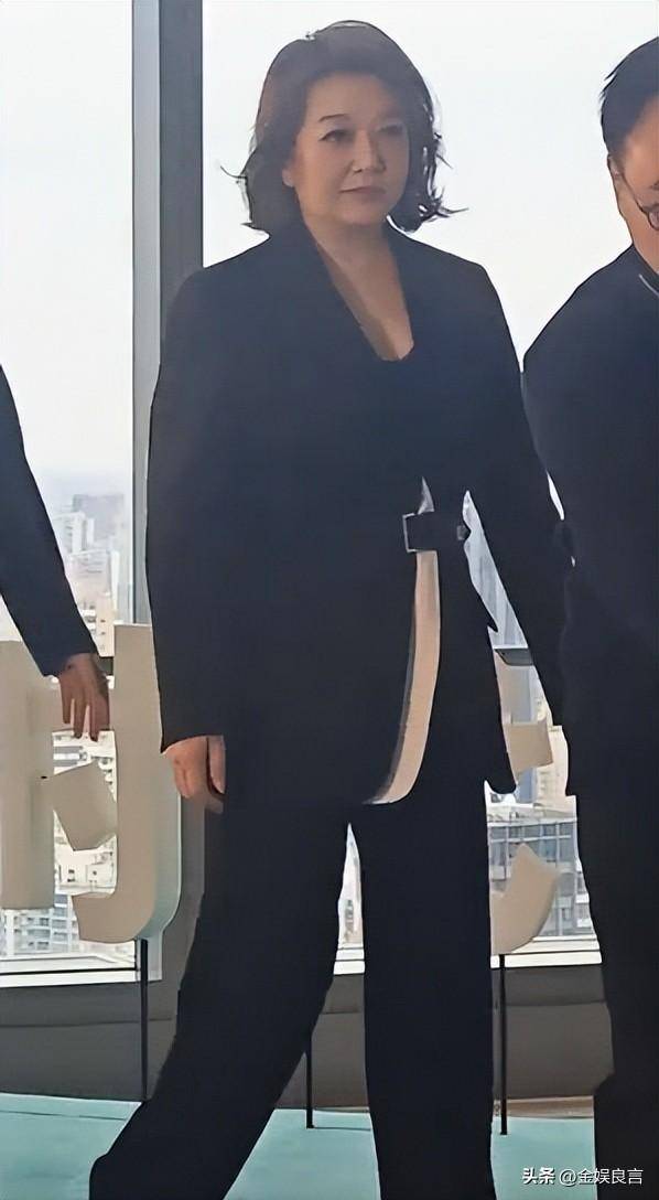 宽松的西装裤藏不住腰腹的赘肉,侧面镜头里,臀部和腰部的线条圆润饱满,和年轻时的纤细模样判若两人,有网友目测她体重接近150斤。